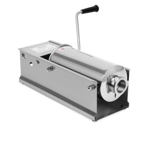 The detailed process of making fresh, homemade sausage is simple with our Tre Spade horizontal sausage stuffers. This stainless steel, watertight, cylindrical sausage stuffer offers a wide selection of sizes and configurations for residential and commercial applications. This standard model’s rack is made of carbon steel; to provide the user with effective production and long-lasting service. Its Maplin piston is equipped with silicon seal and an air release valve. This model is also equipped with two bench clamps. This stuffer is watertight and has easy to clean cylinder welding, ultimately cutting down on your clean up time. The four funnel sizes (10, 20, 30 and 40 mm) allow you to expand the possibilities of how you want to create your linked sausages. While great for creating perfectly-shaped sausages, you can also use this tool towards pepperoni sticks Made in Italy. https://dakit.co/shop/product-category/food-preparation/